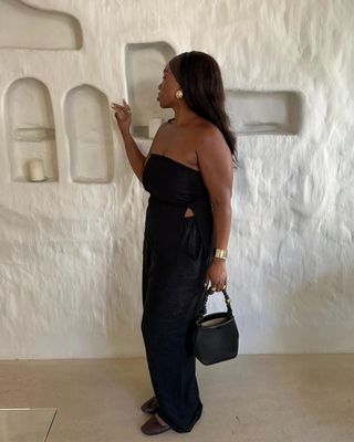 Style Notes: Bandeau tops are having a moment this summer, but the trend is less about tiny jersey styles, with the focus instead being placed on longline, elegant iterations in more premium fabrics, including linen. The longer hemline is excellent at covering more the casual drawstring or elasticated waists that you typically see on linen trousers, making this the ideal eveningwear top solution.