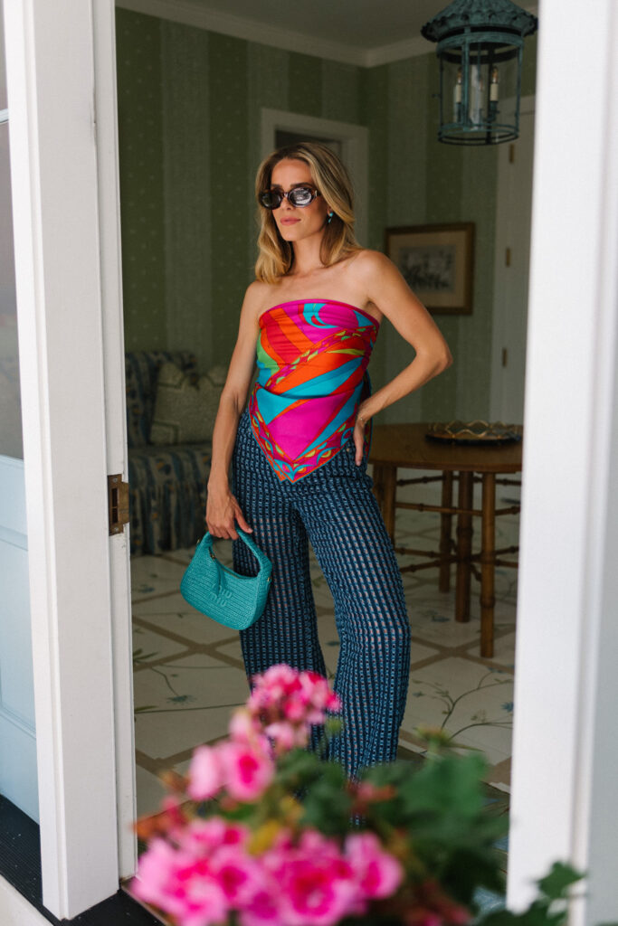 Pucci Scarf, Cult Gaia Pants, Saint Laurent Sunglasses, Miu Miu Bag (more colors here, similar here) & Sandals (similar, less expensive here and here)