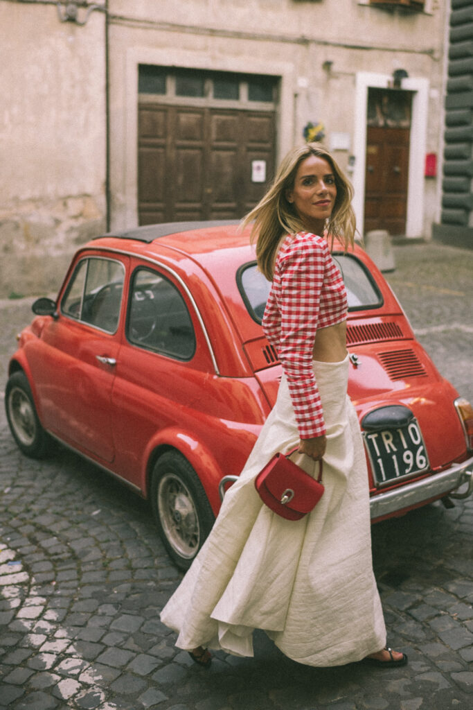 Rosie Assoulin Top (old, similar here and here), Massimo Dutti Necklace, Brandon Maxwell Skirt, Loeffler Randall Sandals, Savette Bag