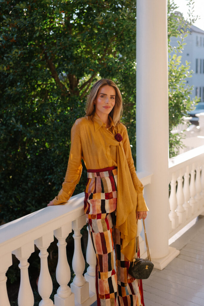 Victoria Beckham Top, Alemais Pants, Jimmy Choo Boots, Chanel Brooch & Bag (both old, similar here and here)