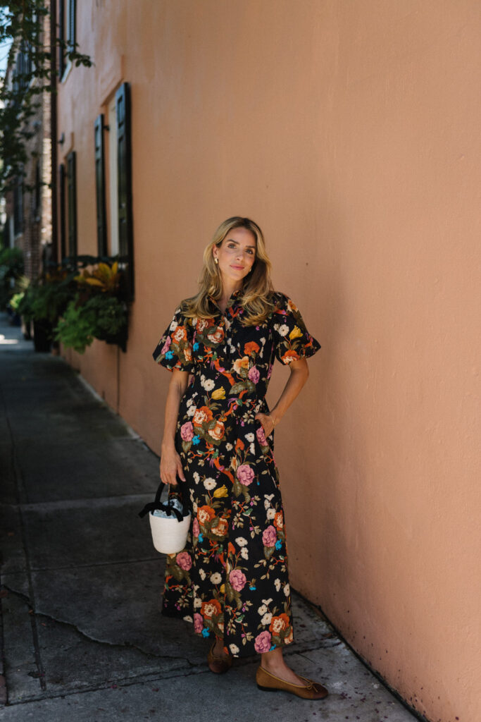 Delaney Dress, Cesta Bag, Chanel Flats, Earrings