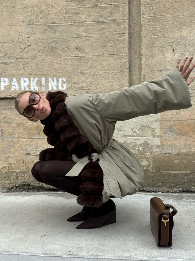 This will come as a shock to no one (no one who follows fashion, at least), but the chicest, easiest alternative to black tights is chocolate-brown tights, and Elsa Hosk, one of the most well-dressed It girls on the planet, just wore a pair. She styled them with a fur-trimmed parka from her line Helsa and the shoe trend that I predict you’re about to see paired with brown tights at every fancy winter occasion and night on the town: satin shoes. Specifically, Hosk wore brown satin mules by Alaïa, but any (preferably brown) satin shoes will do.