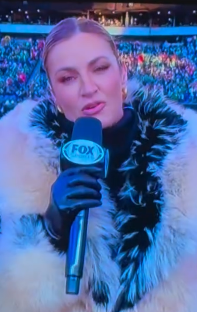 Erin Andrews sparked conversation online while commentating game day wearing Auter’s “The Fox” jacket in the Sand Noir colorway.
