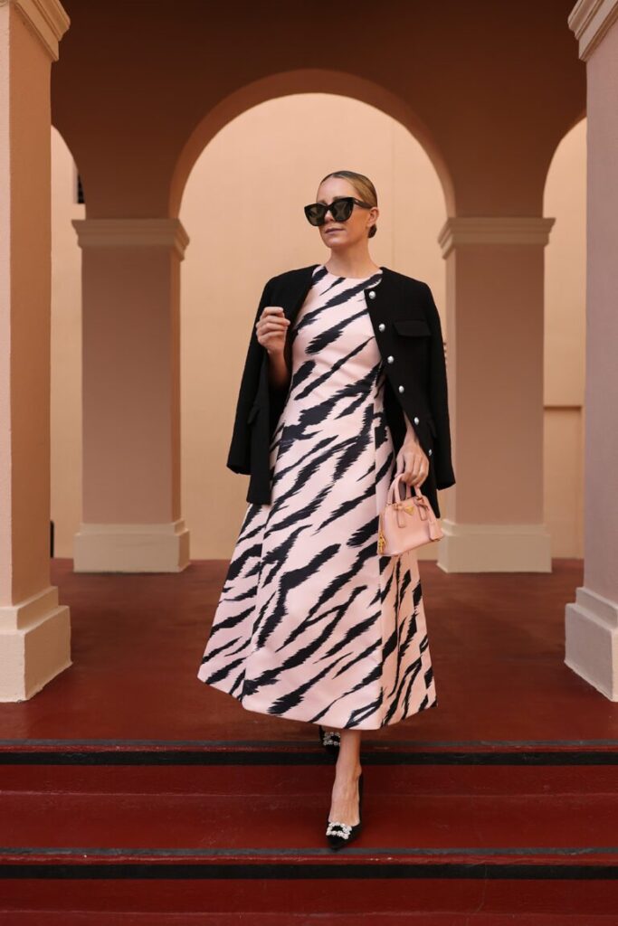 Dress: Leo + Lin // Jacket: Nili Lotan // Shoes: Roger Vivier // Bag: Prada // Sunglasses: Le Specs