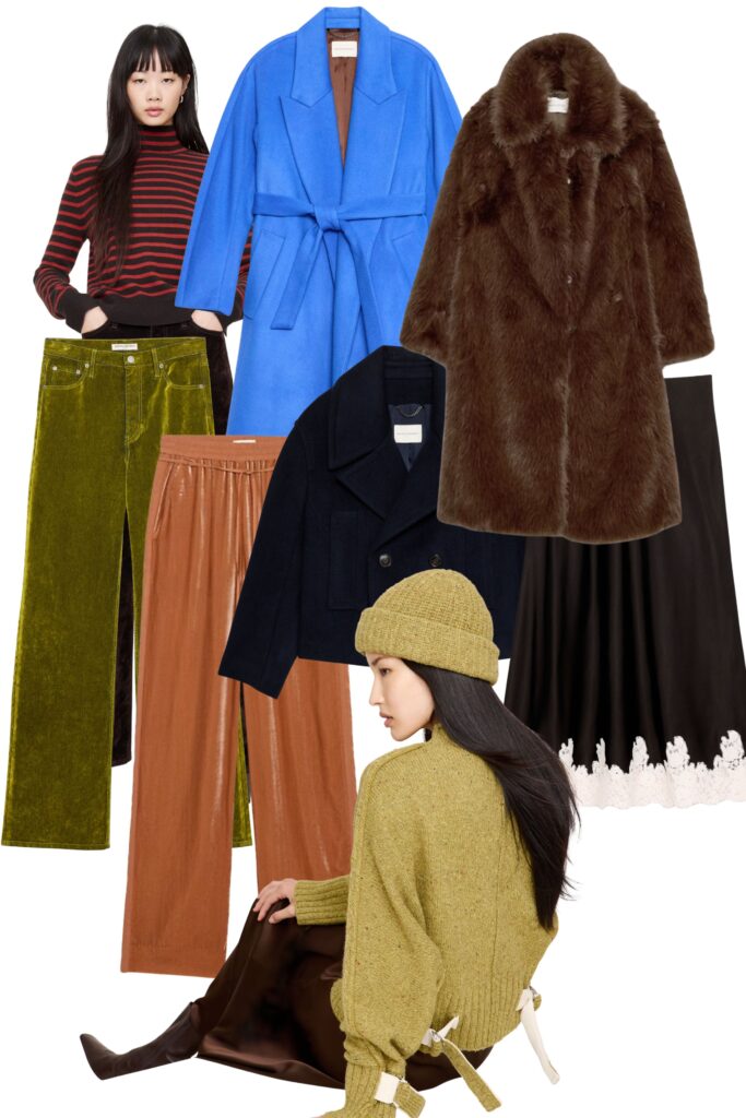BR is looking so fresh lately. I bought these pants immediately, and have also been eyeing these beautiful, drapey pants and this satin and lace skirt. In terms of sweaters, I love this incredibly cool cinch sweater that is available in two colors and this fitted, stripe turtleneck. Outerwear is my true love language and this faux fur, this bright blue and this cropped peacoat all caught my eye.