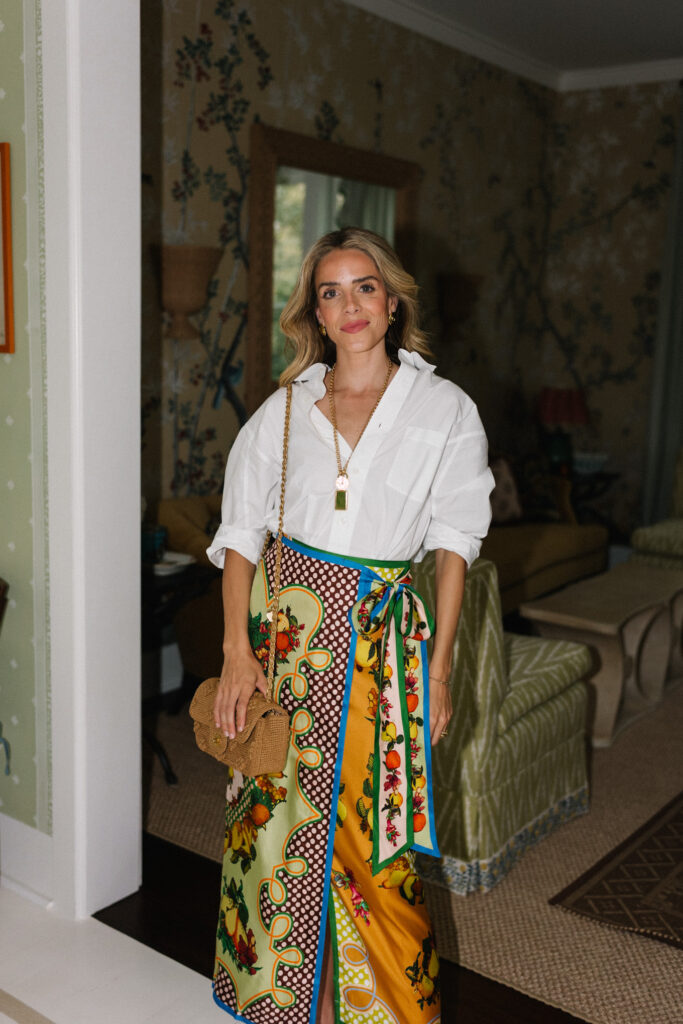 Citizens of Humanity Shirt, Alemais Skirt, Chanel Bag, Sherman Fields & Heritage NYC Necklace, Louis Abel Earrings, Aquazzura Sandals (similar here)