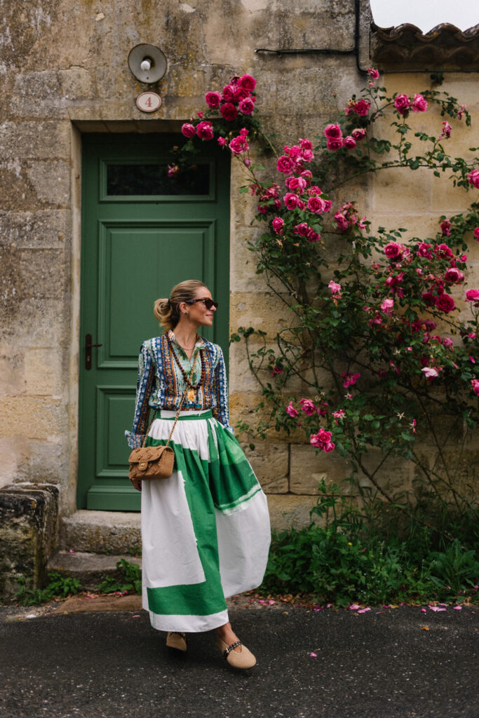 Emporio Sirenuse Top (similar here), Erdem Skirt, Alaia Flats (similar here and here), Chanel Bag, Prada Necklace, Celine Sunglasses (similar here, less expensive here)