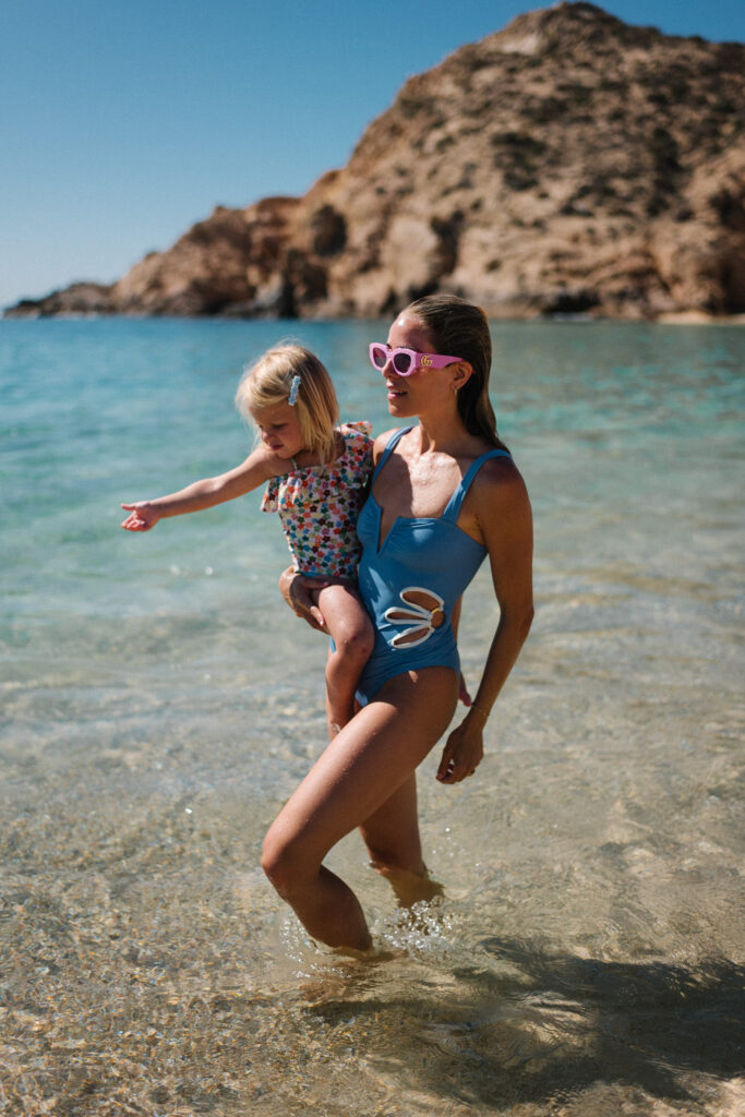Make a splash with the adorable wavy daisy swimsuit, offering both style and sun protection for your little one’s aquatic adventures.