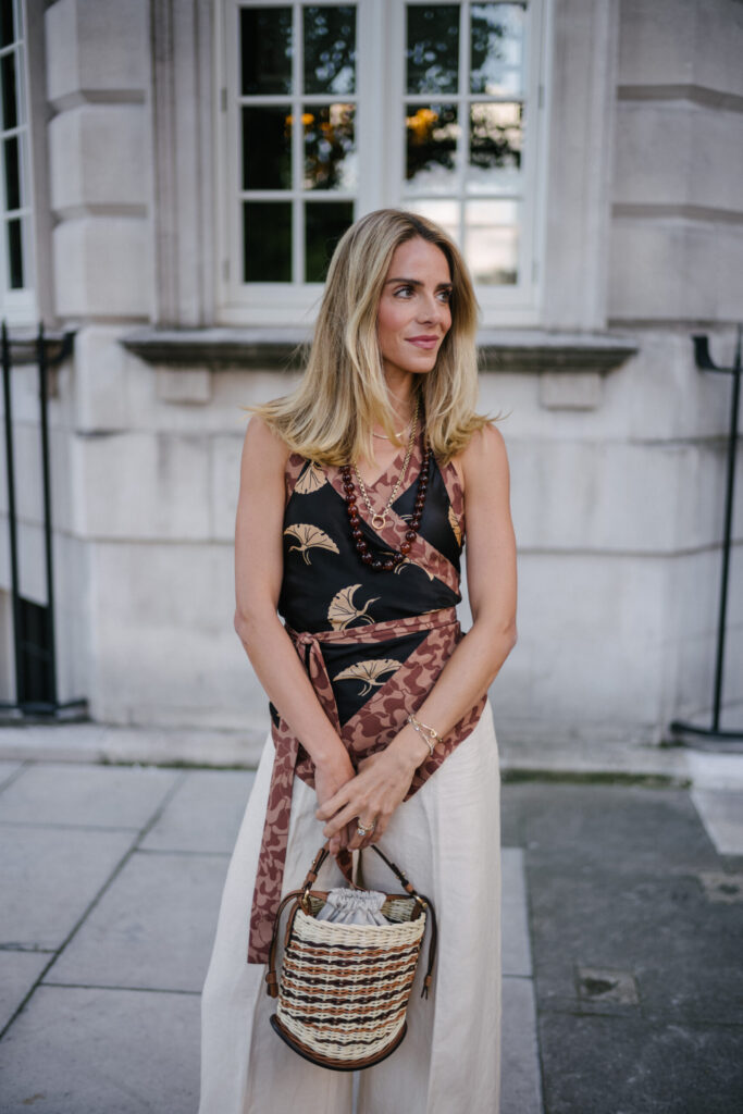 Dries Van Noten Top, Attersee Pants, Delvaux Bag (similar, less expensive here), Saint Laurent Heels, Prada Necklace, Etro Coat (similar here and here)