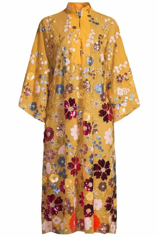 Dress: Johanna Ortiz // Sandals: Veronica Beard (other colors here and here) // Earrings: Saint Laurent