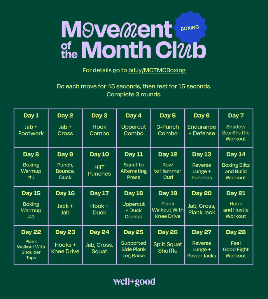 Below, Davis has outlined a monthlong boxing program as part of our Movement of the Month Club for August 2024. It’s designed to introduce you to the fundamentals of boxing, and then progressively build your skills and confidence. We start on Monday, August 5.