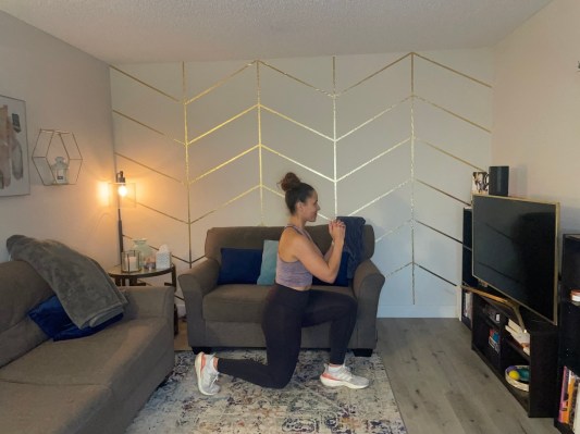 If you struggle with your balance, find a stable surface to use as a support. Try using something to hold on to, like the back of a chair, a door frame, or TRX straps to help you nail the movement, Jaques suggests. You could also do a static lunge instead of moving lunge if balance is a challenge.