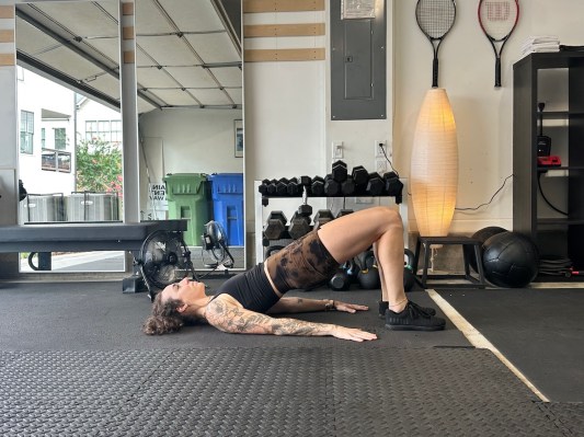 Davis recommends a simple single-leg glute bridge test to asses potential posterior chain weaknesses: While lifted into a glute bridge, extend one leg out, then lower it to the floor and back up again. If you feel your hips sink or wobble or you struggle to maintain balance on one leg, “it’s a good indicator that you need to incorporate more posterior chain exercises into your programs,” she says.