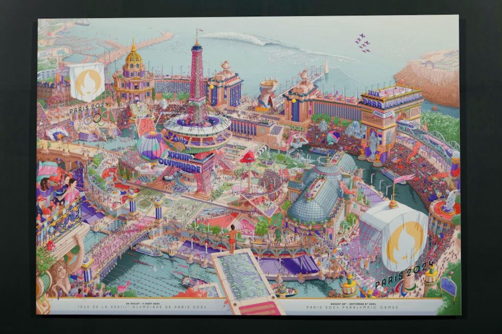 It’s an official poster for the event, according to the official Olympics website. The poster, designed by French artist Ugo Gattoni, details a “utopian, fantasy version of Paris” where “sport is everywhere in the city, and the influence of the Art Deco movement is never far away, creating bridges between past and present, between the Paris of the Games of 1900, that of the Games of 1924, and that a hundred years later, of the Games in 2024,” according to the Olympics website.